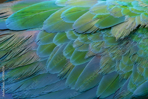 Fototapeta premium Close up of Blue and green macaw bird's feathers.
