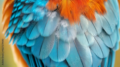 Obraz premium Close-up of Blue and Orange Bird Feathers