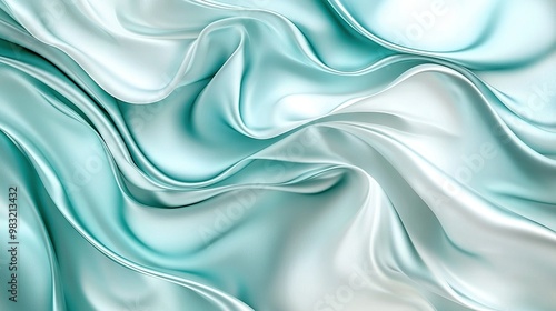 © Sonya, Obraz premium Close-up of blue and white fabric with wave design on top and bottom