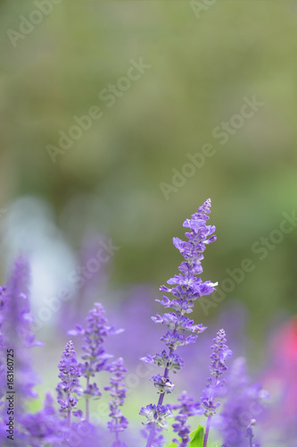© sirintra, Naklejka premium Close-up of Blue Salvia (Blue sage, salvia farina-Cea) flowers blooming in the garden, ornamental plants spring with soft focus colorful flower background.