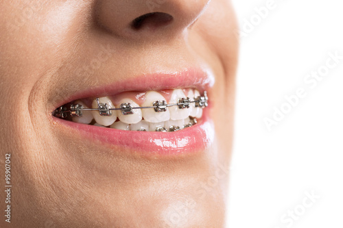 © didesign, Fototapeta premium Close up of braces girls teeth