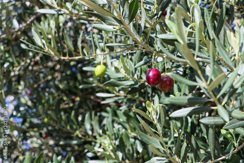 © Hanna, Fototapeta premium Close up of branch of olive tree with berries on it.
