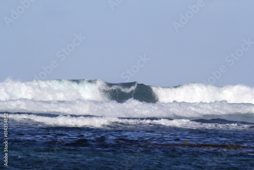 Fototapeta premium Close up of breaking ocean wave under a clear blue sky