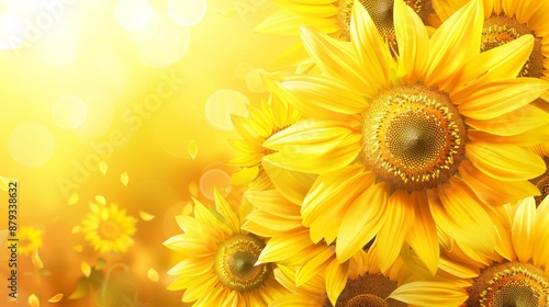 © Jiraphat, Obraz premium Close-up of bright yellow sunflowers blooming in a field on a sunny summer day
