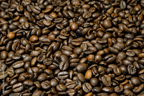 © ako-photography, Naklejka premium Close-up of brown, roasted coffee beans background