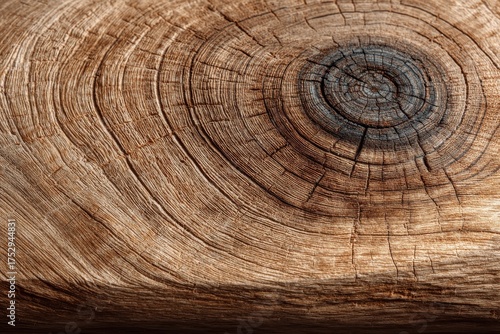 © SaroStock, Naklejka premium Close up of brown wood stump with rings and dark center featuring texture and natural grain