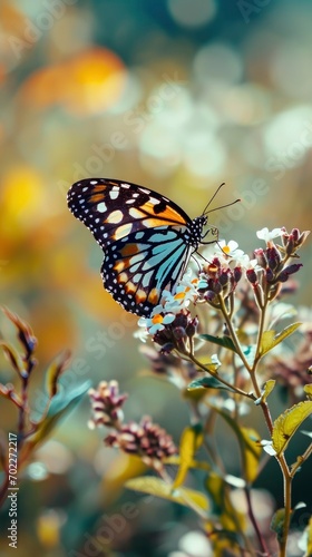 Fototapeta premium close up of butterfly,sitting on a flower,bokeh background,vivid colors,