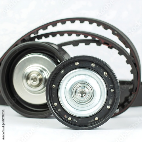 © Su, Obraz premium Close-up of car engine belts and pulleys
