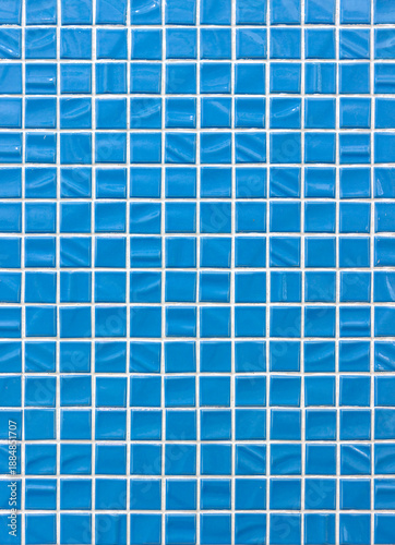© Irina, Fototapeta premium Close-up of ceramic tile texture made of small bright blue squares