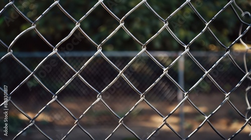 © evening_tao, Fototapeta premium Close-Up of Chain Link Fence with Blurred Background