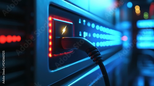 © coroze, Naklejka premium Close-Up of Charging Cable Plugged into Renewable Energy Device