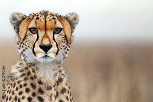 © Сергей Захаров, Obraz premium close-up of cheetah intense gaze with its face in focus and savannah blurred in background