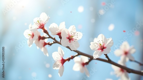 Fototapeta premium Close-Up of Cherry Blossom Flowers Against a Clear Blue Sky Background