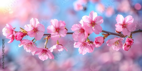 Obraz premium Close-up of cherry blossoms blooming in the springtime sun