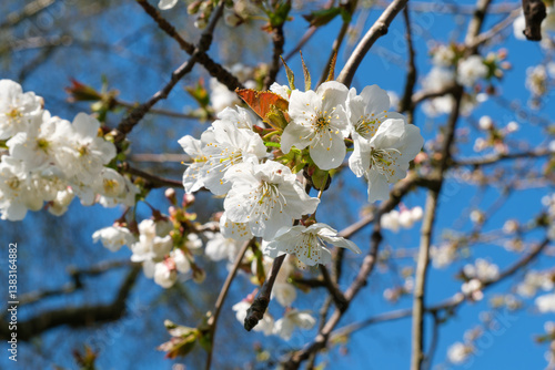 © D. Ott, Obraz premium Close-Up of Cherry Blossoms on Tree Branch Against Blue Sky.
