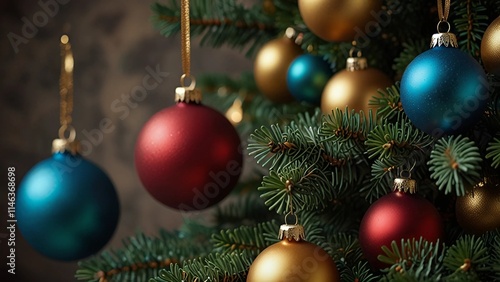 © Besai, Obraz premium Close up of christmas tree with decoration wallpaper