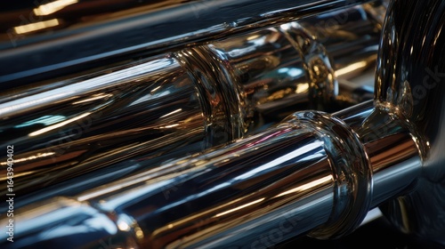 © Kitta Studio, Naklejka premium Close-Up of Chrome Pipe Reflecting Light with Intricate Patterns