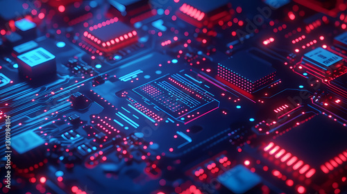 © xuan, Obraz premium Close-up of circuit board with red and blue lights