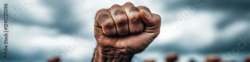 © Lila Patel, Fototapeta premium Close-up of Clenched Fist Against Cloudy Sky
