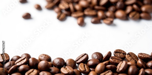 © dadtophoto, Naklejka premium Close-up of coffee beans against white backdrop , stimulant, food, macro