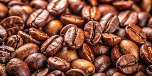 Naklejka premium Close up of coffee beans background, coffee, beans, close up, texture, background, aroma, espresso, morning, caffeine, roasted, brown