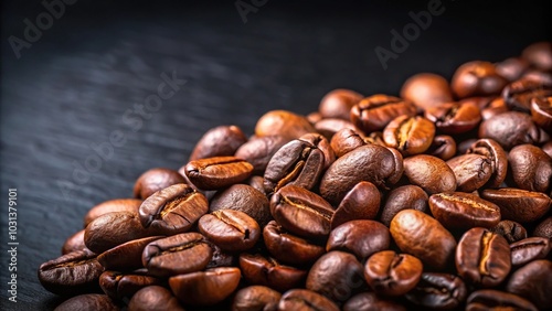 © Anulak, Naklejka premium Close-up of coffee beans on black table background