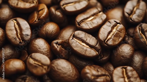 Naklejka premium Close-up of coffee beans, rich texture
