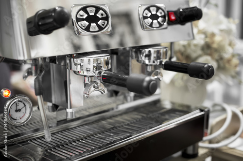 Fototapeta premium Close-Up of coffee machine making a cup of coffee in restaurant
