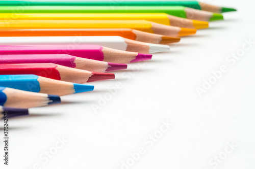 Naklejka premium Close up of color pencils on white background