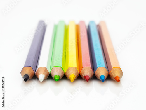 Naklejka premium Close up of color pencils on white background.