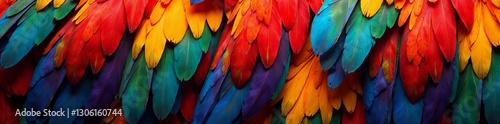 © Chavankorn, Obraz premium Close up of colorful bird feathers in a repeating pattern, texture, bird, wildlife