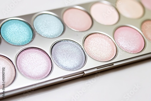 Naklejka premium Close-up of colorful eyeshadow palette with shimmer