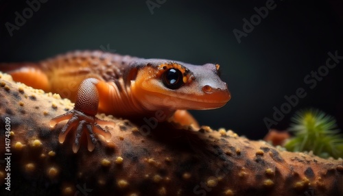© ChaokuayOfficial, Obraz premium Close-Up of Colorful Gecko Resting on Textured Surface with Dramatic Lighting and Soft Background