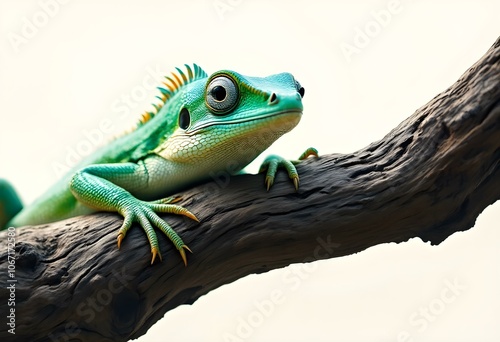 Obraz premium Close-Up of Colorful Lizard Relaxing on a Tree Branch