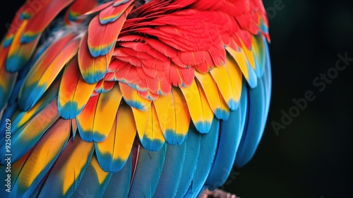 © Cornflakesei, Obraz premium Close Up of Colorful Macaw Feathers