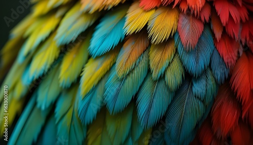 Obraz premium Close-up of colorful parrot feathers in high detail