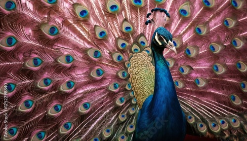 © Ayahe Stock, Obraz premium Close up of colorful peacock feathers with vibrant pink and blue patterns in a beautiful display