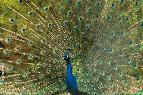© Aleksandr, Naklejka premium Close up of colorful peacock with his feathers fanned out