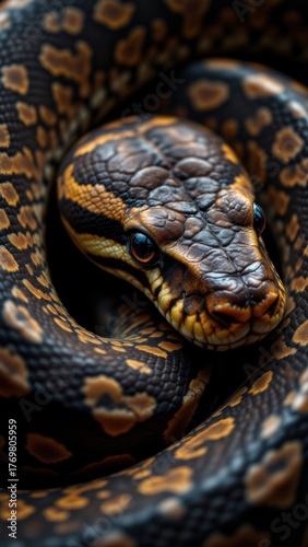 Fototapeta premium Close-Up of Colorful Python Scales and Eyes