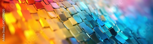 © Rattanathip, Obraz premium Close-up of colorful reflective tiles creating a mesmerizing gradient effect. Perfect for abstract backgrounds and creative designs.