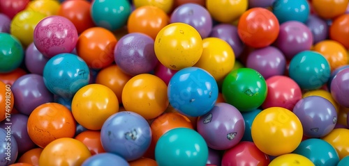 © Areewan, Obraz premium Close-up of colorful, smooth, glossy balls in a pile, reflection, surface