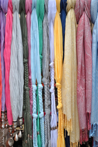 Fototapeta premium Close Up of Colourful Hanging Textile Material