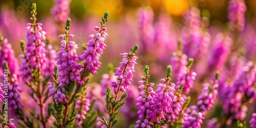 © Sirinporn, Fototapeta premium Close-up of Common Heather (Calluna vulgaris) Blooming on Heathland