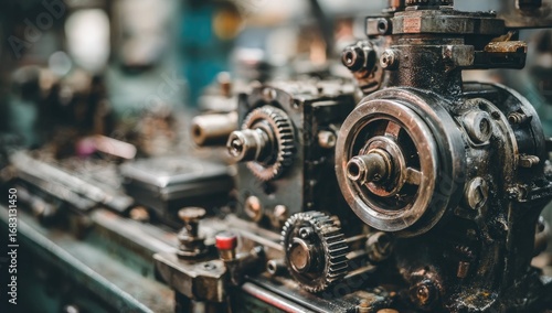 Fototapeta premium Close-up of complex, rusty industrial machine