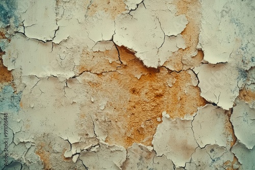 Obraz premium Close-up of Cracked and Peeling Paint on a Weathered Wall