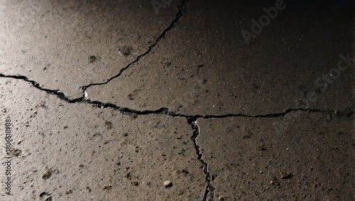 © Barokahe, Fototapeta premium Close-up of cracked concrete. Dark gray, rough texture. Deep fissures