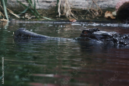 Fototapeta premium Close-Up of Crocodile Head Emerging from Water in Natural Habitat