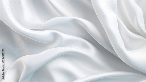 © Nice Seven, Obraz premium Close-Up of Crumpled Pure White Silk Fabric for Background Use in Textures, Patterns, and Elegant Design Projects