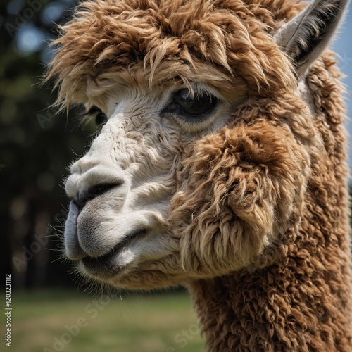 Obraz premium close up of cute alpaca head Photo of furry alpaca A close-up portrait of a...