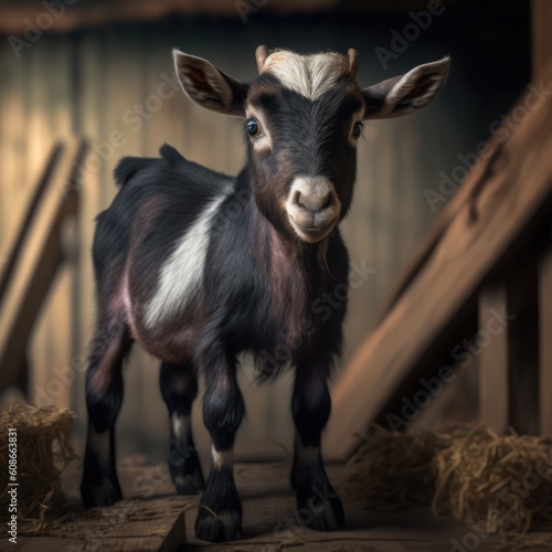 Fototapeta premium Close up of cute pygmy goat in field, created using generative ai technology